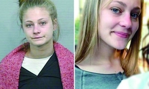 通缉照片(左)及越狱女孩自己发的“通缉照”